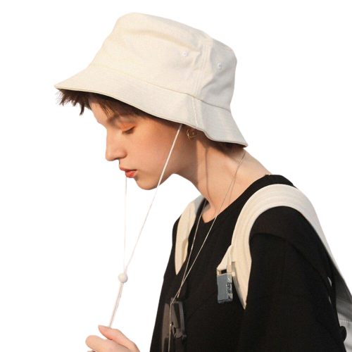 Porter ce bob, c’est bénéficier d’une protection efficace contre le soleil et la pluie, tout en conservant un style chic. Le bob blanc ivoire avec ficelle est synonyme de confort et de praticité.